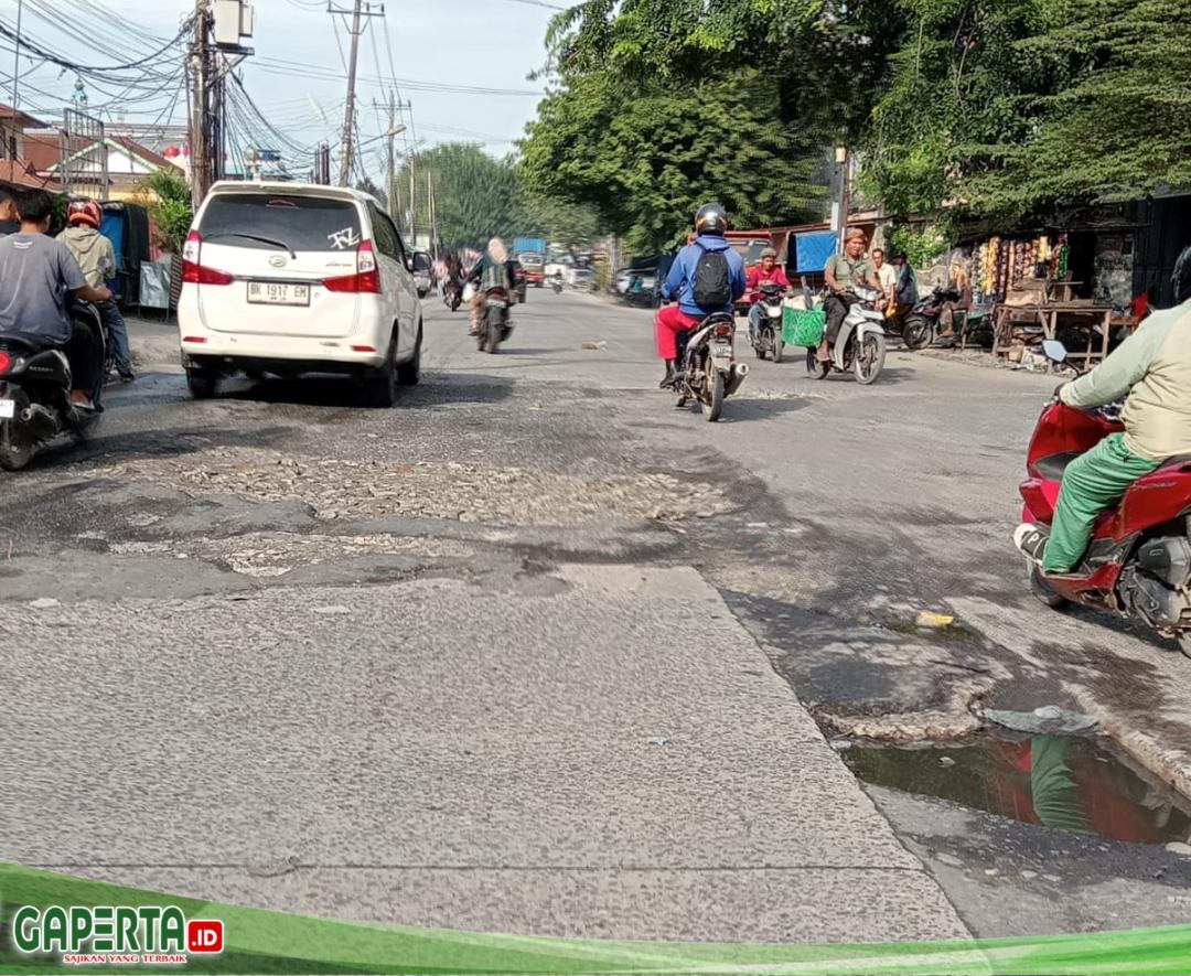 Berdasarkan pantauan di lokasi, seperti terlihat pada kerusakan jalan berupa lubang besar dan aspal terkelupas sudah menjadi pemandangan sehari-hari.