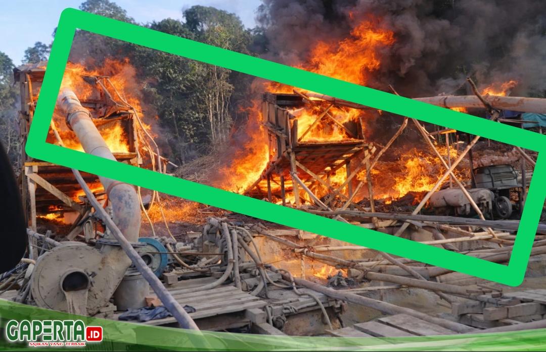 Dalam operasi tersebut, petugas memusnahkan sejumlah peralatan tambang emas ilegal dengan cara dibakar di lokasi.