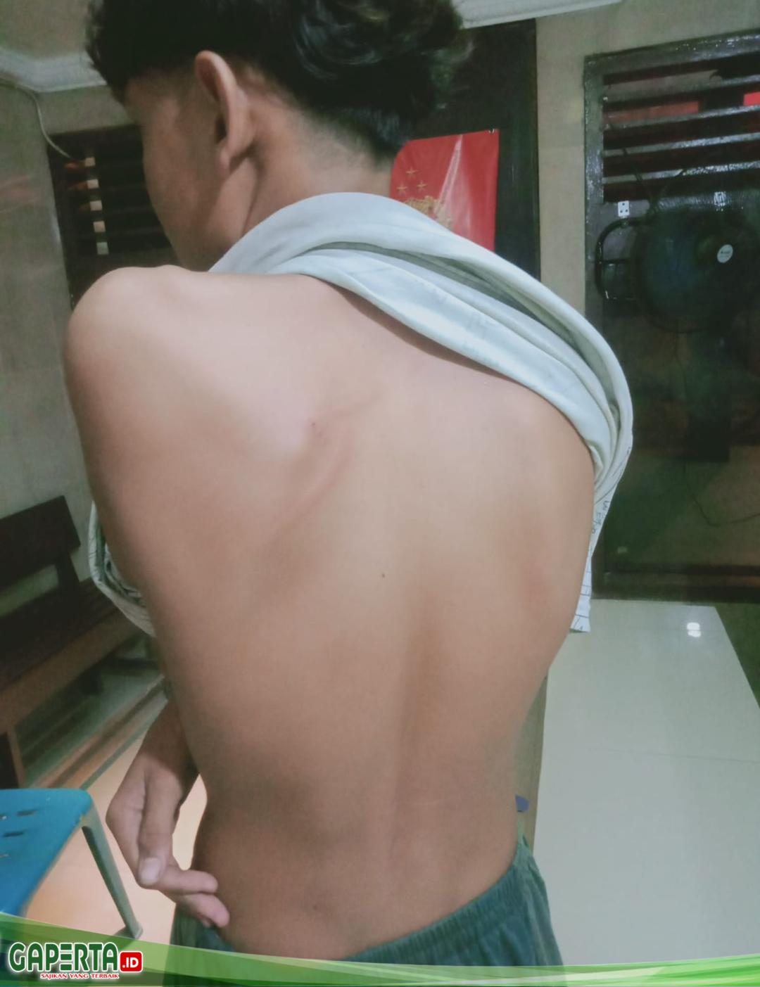 Akibat kejadian tersebut, korban mengalami luka lembam di bagian punggung dan pundak setelah dicambuk menggunakan tali pinggang oleh pelaku.