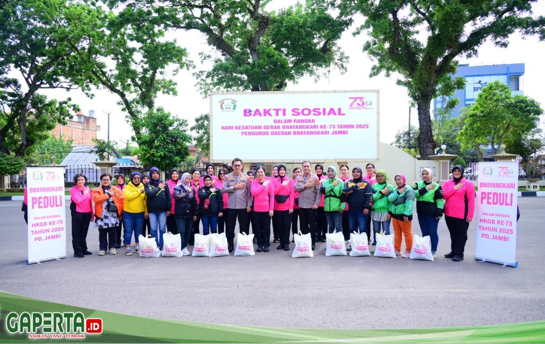 Jambi, [Gaperta.id] – Dalam rangka memperingati Hari Kesatuan Gerak Bhayangkari (HKGB) ke-73 Tahun 2025, Polda Jambi bersama Bhayangkari Daerah Jambi menggelar kegiatan Bakti Sosial (Baksos) bersama ojek online (Ojol) dan ojek pangkalan, Jumat (12/9/2025)