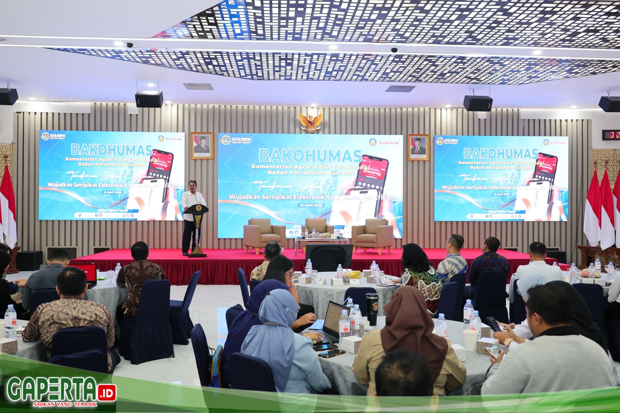 JAKARTA, [Gaperta.id] – Sekretaris Jenderal (Sekjen) Kementerian Agraria dan Tata Ruang/Badan Pertanahan Nasional (ATR/BPN), Dalu Agung Darmawan, secara resmi membuka Forum Badan Komunikasi Hubungan Masyarakat (Bakohumas) pada Rabu (15/04/2026). Sejalan dengan digitalisasi yang dilakukan terhadap layanan pertanahan dan tata ruang, forum kali ini diselenggarakan sebagai wadah memperkuat pemahaman dan sinergi antarinstansi dalam mendukung implementasi layanan berbasis digital.