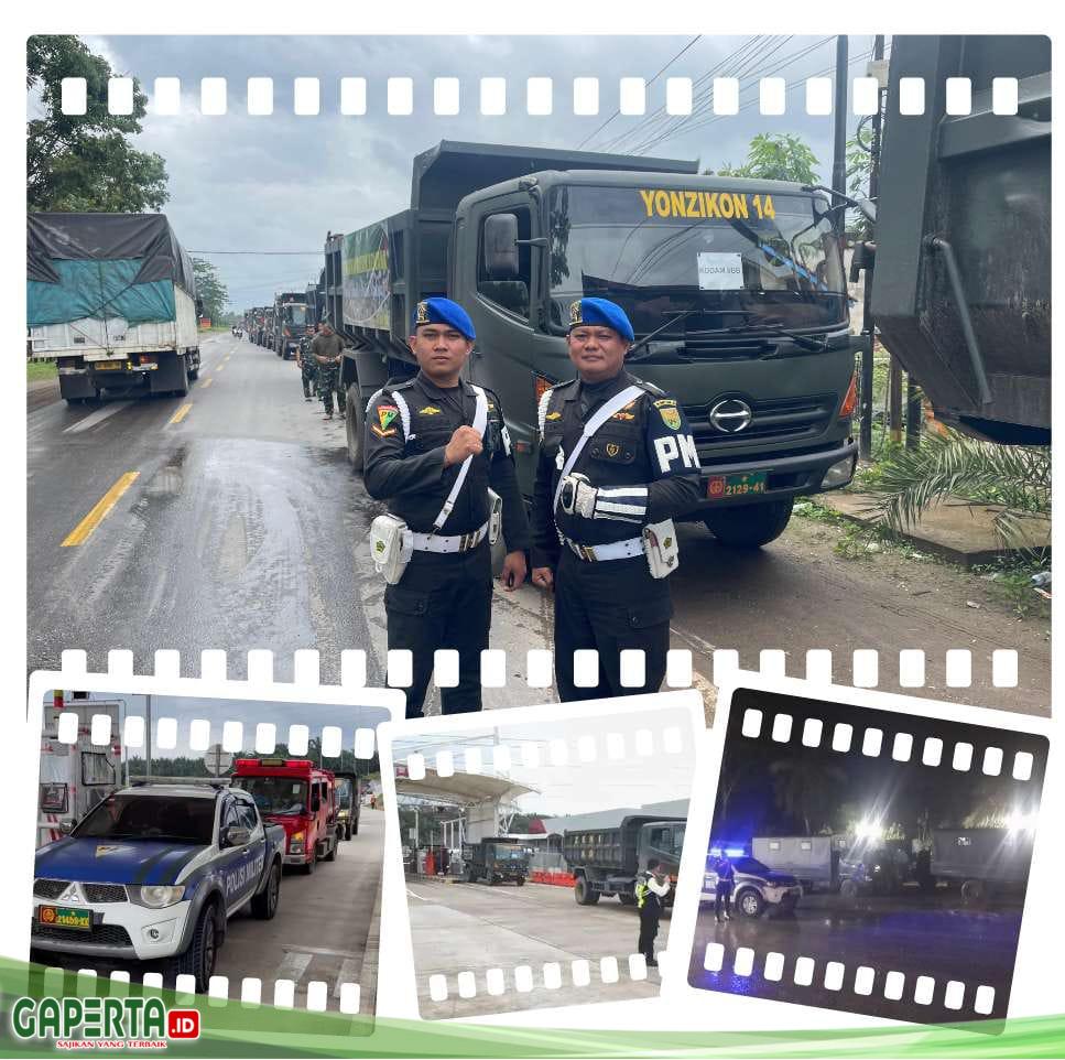 Jambi, [Gaperta.id] – Denpom II/2 Jambi jajaran Korem 042/Gapu melaksanakan pengawalan lintas ganti konvoi kendaraan Serial 4 Sermat dalam rangka percepatan penanggulangan bencana alam di wilayah Sumatra serta mendukung kegiatan Latihan Integrasi Taruna Wreda Nusantara (Latsitarda Nusantara) Tahun 2026, Sabtu (10/1/2026).