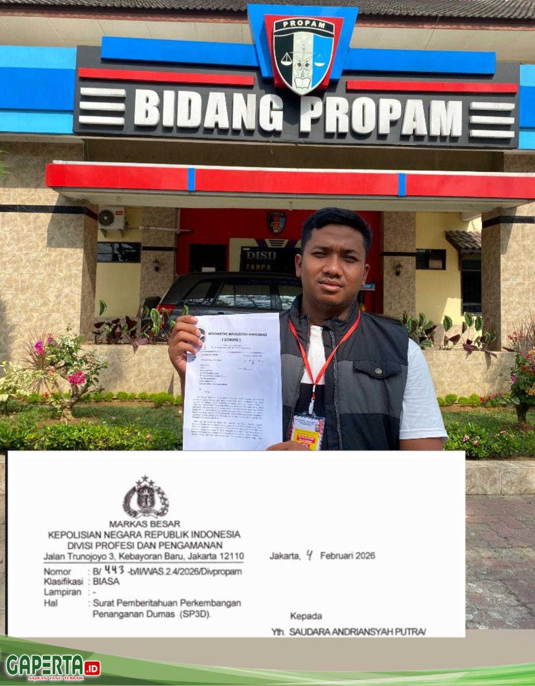 informasi dalam SP3D tersebut yg dikeluarkan oleh DIPROPAM MABES POLRI pada tanggal 4 februari 2026.. bahwa:
