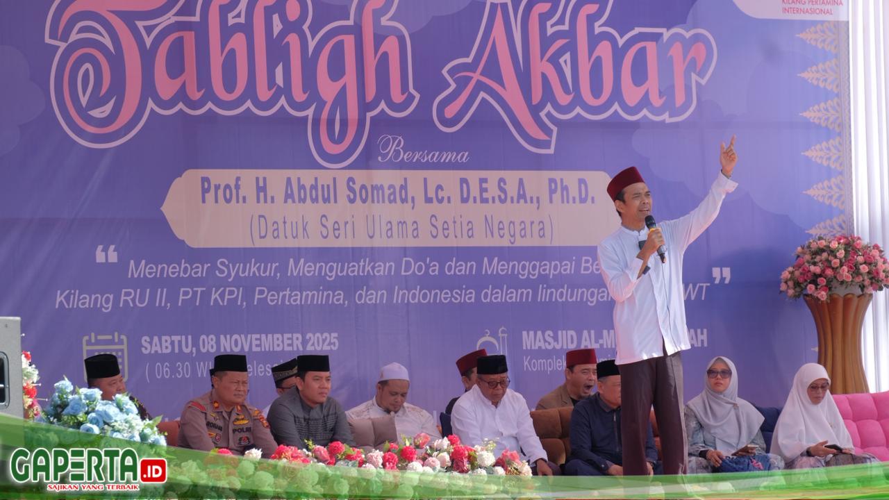DUMAI, [Gaperta.id] — Memperingati 8 tahun kiprah PT Kilang Pertamina Internasional (PT KPI) sebagai bagian penting dalam menopang ketahanan energi nasional sekaligus mendukung pembangunan berkelanjutan, PT KPI RU II Production Sungai Pakning (Kilang Pertamina Sungai Pakning) menggelar Tabligh Akbar bertajuk “Menebar Syukur, Menguatkan Do’a, dan Menggapai Berkah: Kilang RU II, PT KPI, Pertamina, dan Indonesia dalam lindungan Allah SWT”.