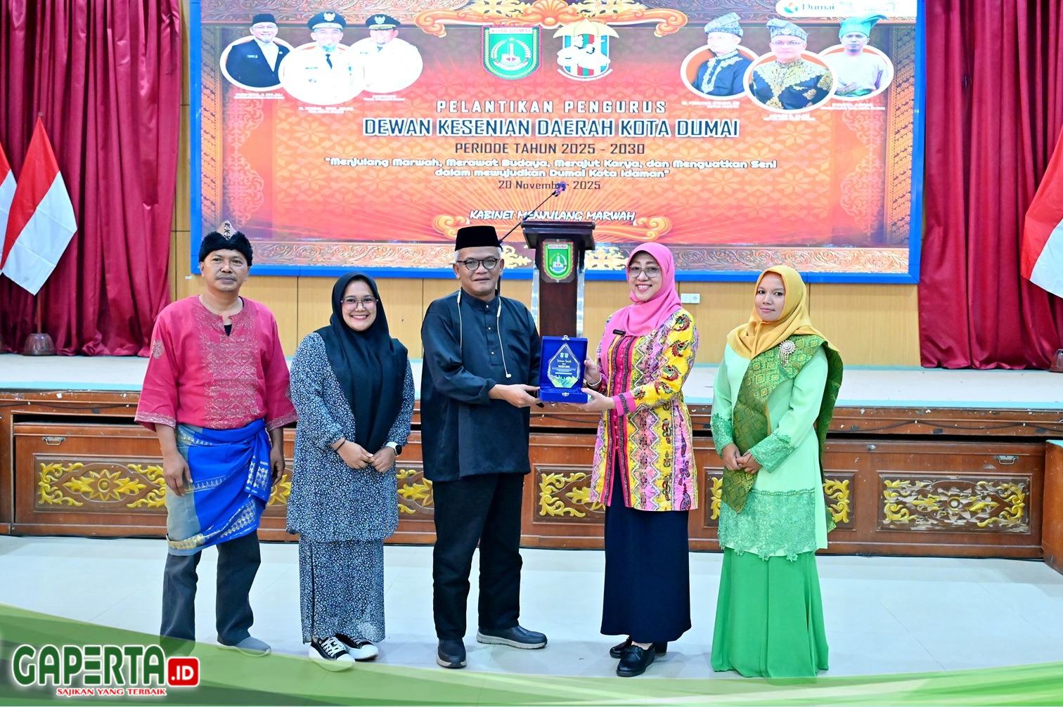 DUMAI, [Gaperta.id] — Pengurus Dewan Kesenian Daerah (DKD) Kota Dumai Periode Tahun 2025-2030 resmi dilantik. Acara pelantikan berlangsung khidmat di Balai Sri Bunga Tanjung, Kamis (20/11/2025).