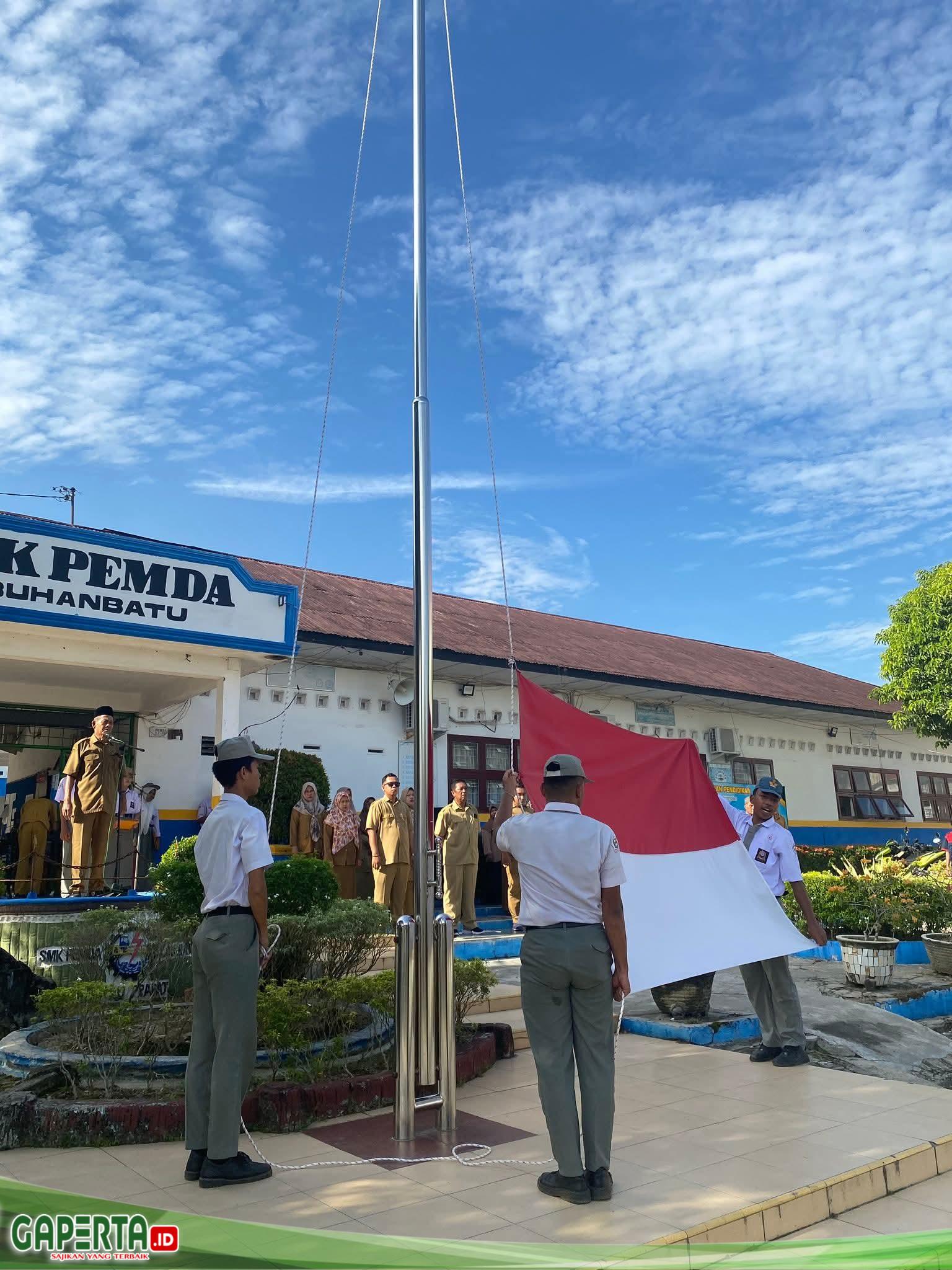SMKS Pemda Rantauprapat Memperingati Upacara Bendera Hari Sumpah Pemuda 2025 di halaman sekolah Jl. K.H Dewantara Np.104, Sioldengan, Rantau Selatan, Labuhanbatu, Selasa (28/10/2025).