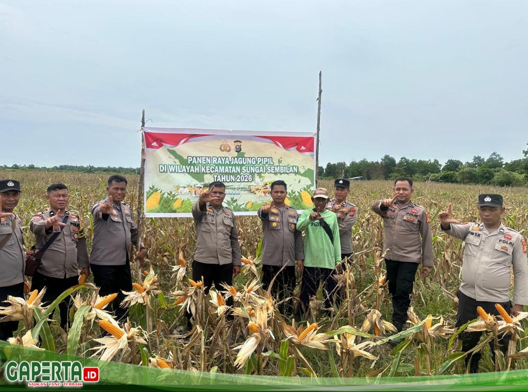 DUMAI, [gaperta.id] – Selasa (14/4/2026) sekira pukul 10.30 WIB, bertempat di lahan Bapak Jumirin, di Jl. Melati Laut RT.09 Kel. Tanjung Penyembal Kec. Sungai Sembilan, Polsek Sungai Sembilan lakukan panen jagung Pipil, Kuartal II Tahun 2026.
