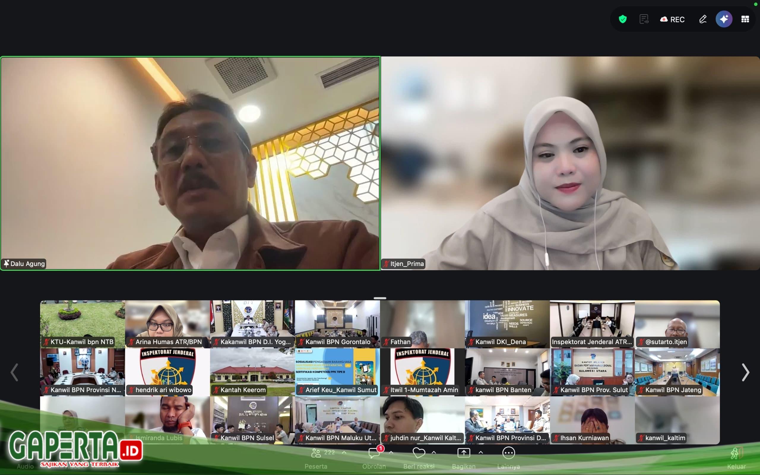 JAKARTA, [Gaperta.id] – Kementerian Agraria dan Tata Ruang/Badan Pertanahan Nasional (ATR/BPN) memperkuat pengawasan internal dengan menyelenggarakan Webinar Entry Meeting Pelaksanaan Audit Kinerja Tahun 2026 pada Senin (13/04/2026). Sekretaris Jenderal (Sekjen) ATR/BPN, Dalu Agung Darmawan, menilai hasil audit kinerja adalah hal penting yang digunakan untuk memastikan seluruh kegiatan tepat sasaran, sesuai tujuan dari proses pelaksanaan hingga evaluasi.