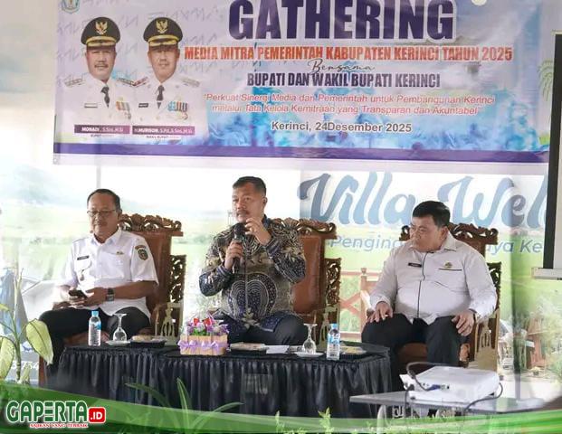 KERINCI, [Gaperta.id] – Pemerintah Kabupaten Kerinci melalui Dinas Komunikasi dan Informatika menggelar Gathering Media Mitra Pemerintah Kabupaten Kerinci Tahun 2025 bersama Bupati dan Wakil Bupati Kerinci sebagai upaya memperkuat sinergi dan kemitraan strategis antara pemerintah daerah dan insan pers.