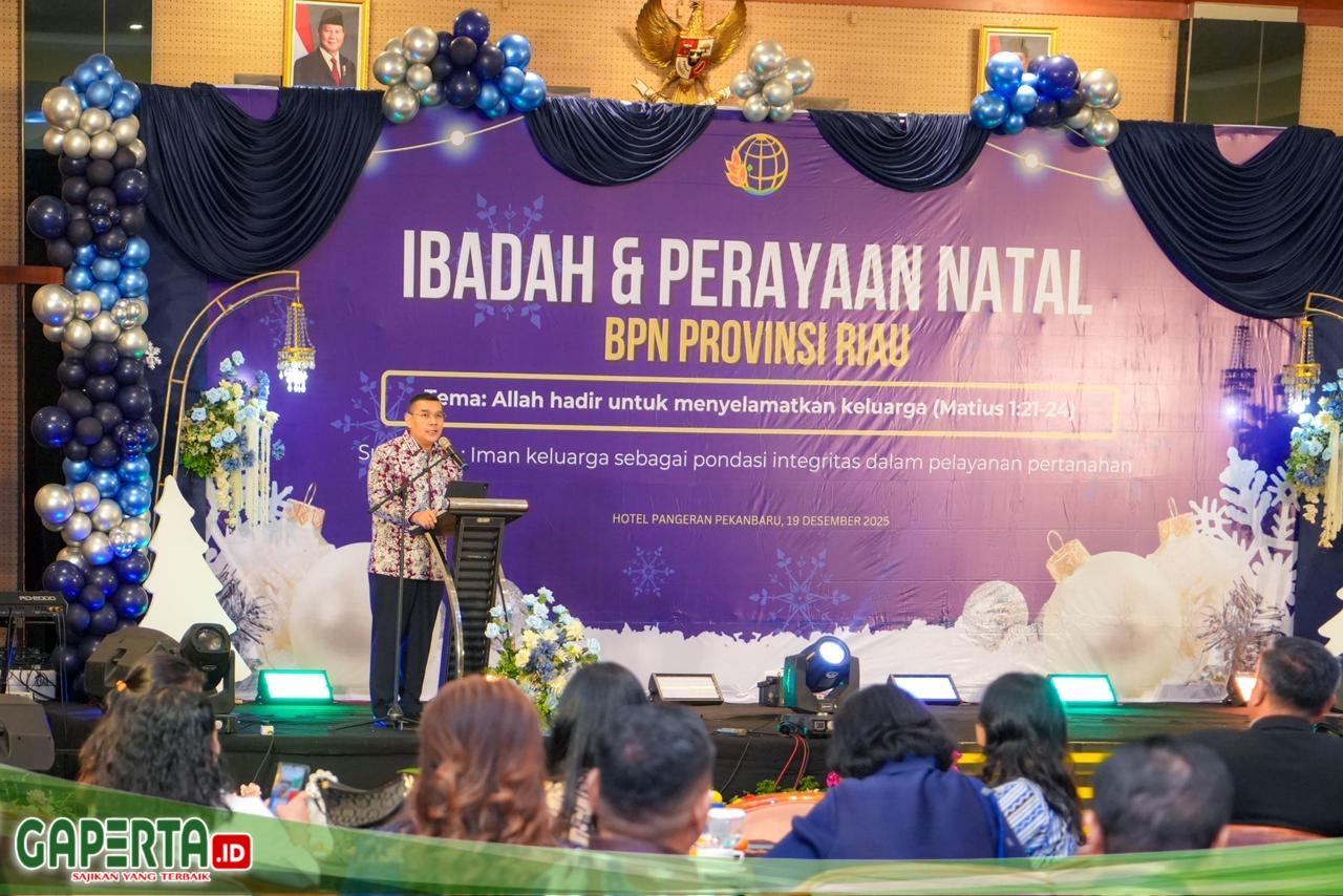 PEKANBARU, [Gaperta.id] — Natal dinilai menjadi momentum untuk memperkuat nilai spiritual dan etika kerja dalam menjalankan tugas pelayanan publik. Pada perayaan Natal yang diselenggarakan Kantor Wilayah (Kanwil) BPN Provinsi Riau, Wakil Menteri Agraria dan Tata Ruang/Wakil Kepala Badan Pertanahan Nasional (Wamen ATR/Waka BPN), Ossy Dermawan, mengajak seluruh jajaran untuk terus menjaga semangat pengabdian di tengah berbagai tantangan yang dihadapi.