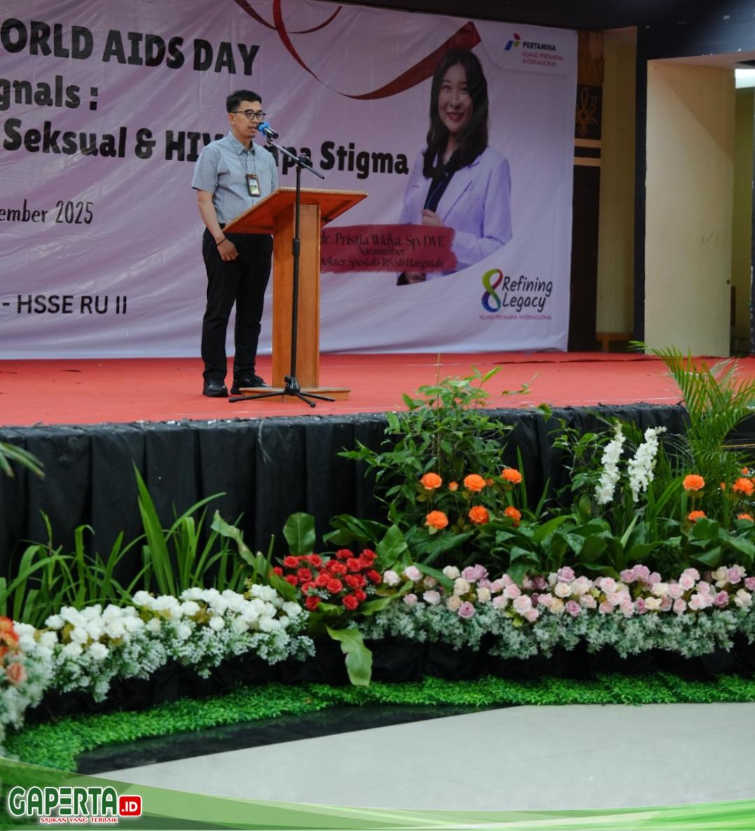 DUMAI, [Gaperta.id] — Dalam rangka memperingati Hari AIDS Sedunia yang diperingati setiap tanggal 1 Desember, Kilang Pertamina Dumai menyelenggarakan seminar kesehatan bertajuk “Skin Signals: Memahami Infeksi Menular Seksual & HIV Tanpa Stigma”, Selasa (2/12). Kegiatan yang berlangsung di Gedung BPSM Komperta Bukit Datuk ini diikuti oleh pekerja dan mitra kerja Kilang Dumai, Persatuan Wanita Patra (PWP), serta kalangan pelajar dari SMKN 5 dan SMKS Budi Dharma Kota Dumai.