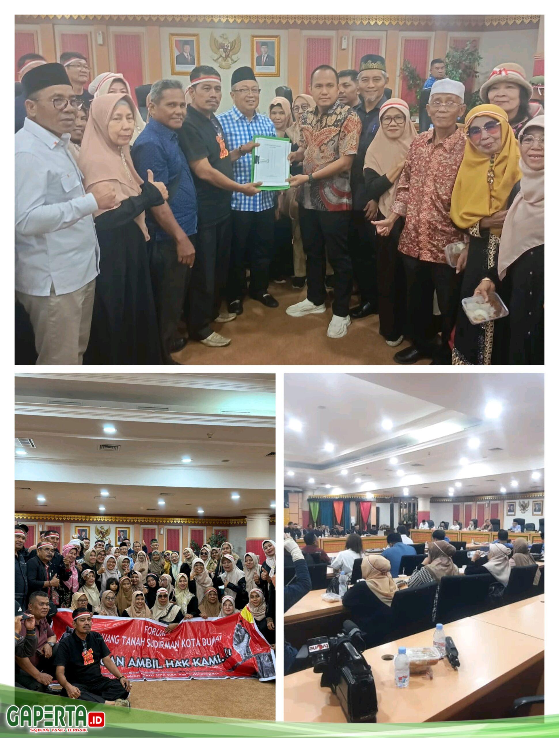 PEKANBARU, [Gaperta.id] — Hampir seratusan warga lebih tepatnya 73 orang perwakilan masyarakat yang bertempat tinggal atau memiliki aset atau berkepentingan di sepanjang Jl. Sudirman Kota Dumai datang memenuhi undangan hearing Sekretariat DPRD Riau, Senin (1/12/2025).