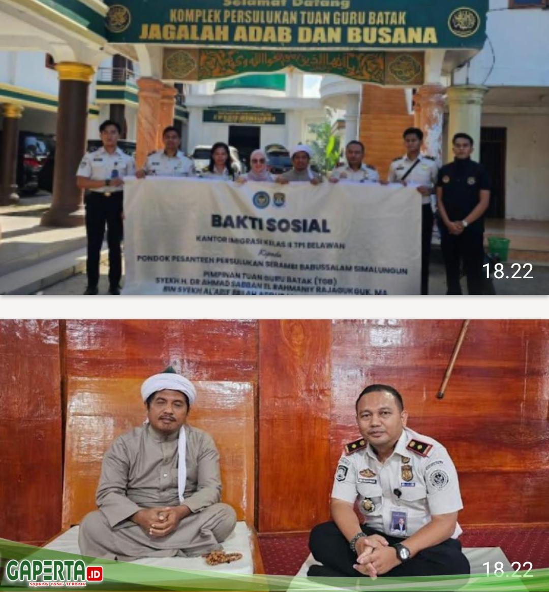 BELAWAN, [Gaperta.id] – Kepala Kantor Imigrasi Kelas II TPI Belawan, Eko Yudis Parlin Rajagukguk bersama jajaran melaksanakan bakti sosial dalam rangka menyambut Bulan Suci Ramadan 1447 Hijriah, di Pondok Persulukan Serambi Babussalam Simalungun, Rabu (25/2).