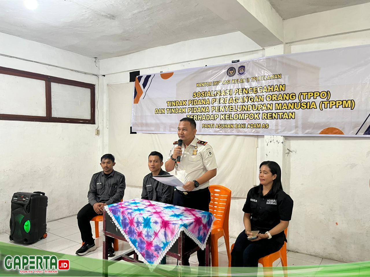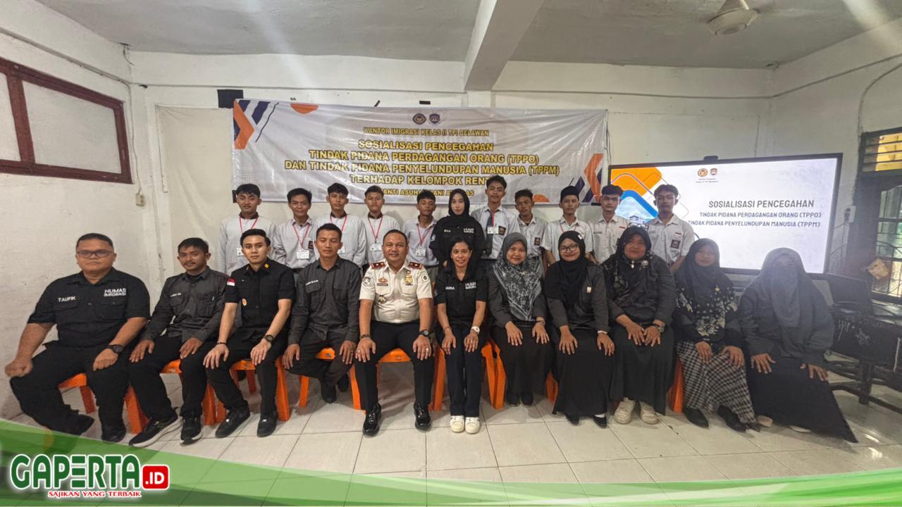 BELAWAN, [Gaperta.id] – Kantor Imigrasi Kelas II TPI Belawan memberikan edukasi kepada pelajar di SMA Yayasan Panti Asuhan Bani Adam, Kota Medan, Sumatera Utara, sebagai upaya pencegahan tindak pidana perdagangan orang (TPPO) dan tindak pidana penyelundupan manusia (TPPM).