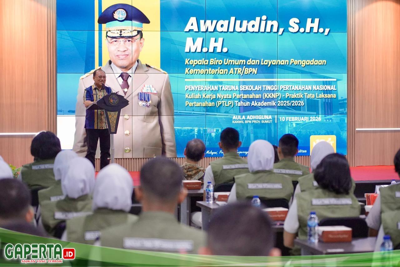 MEDAN, [Gaperta.id] – Kementerian Agraria dan Tata Ruang/Badan Pertanahan Nasional (ATR/BPN) menggandeng Sekolah Tinggi Pertanahan Nasional (STPN) untuk mendukung percepatan restorasi arsip pertanahan pascabencana di Kantor Pertanahan (Kantah) Kabupaten Aceh Tamiang. Kepala Biro Umum dan Layanan Pengadaan, Awaludin, menjelaskan bentuk dukungan dilakukan melalui pelaksanaan Kuliah Kerja Nyata Pertanahan-Praktik Tata Laksana Pertanahan oleh Taruna/i STPN. Keterlibatan taruna/i dinilai menjadi bagian penting dalam upaya menjaga keberadaan dan keberlanjutan dokumen negara.