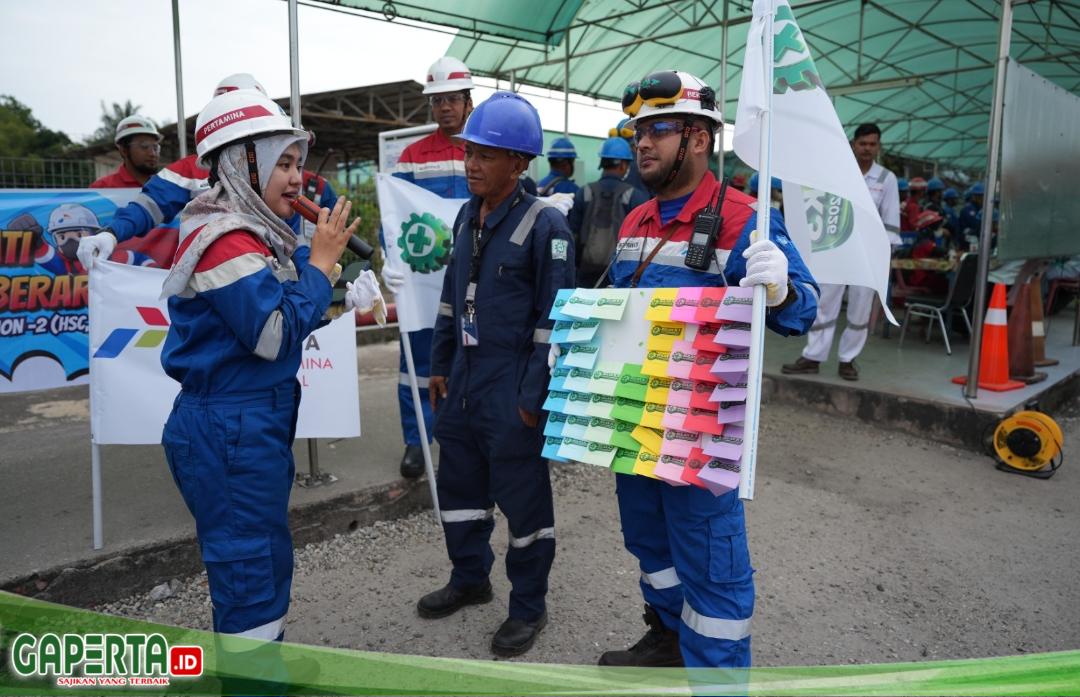 DUMAI, [Gaperta.id] — Kilang Pertamina Dumai ingatkan seluruh pekerja dan mitra kerja yang hendak masuk ke area kilang mengenai keselamatan dan keamanan kerja. Kegiatan ini dilaksanakan dengan semangat Gerakan Nasional (Gernas) Bulan K3 Tahun 2026, melalui kegiatan kampanye pesan keselamatan kerja (K3) lewat kegiatan bertajuk HSSE Street Campaign Safety Leadership Program (SLP) 4.0.