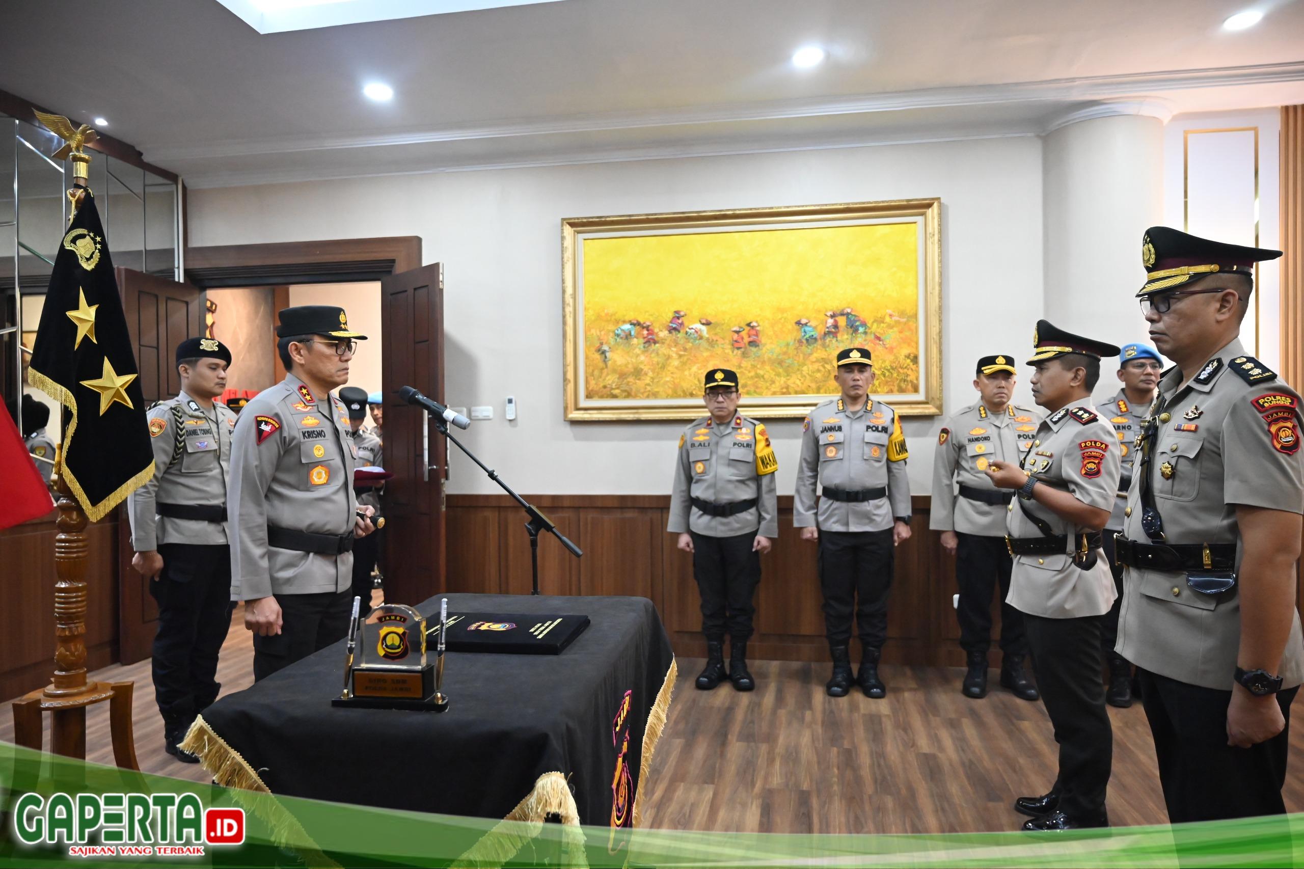 Jambi, [Gaperta.id] – Kapolda Jambi, Krisno Halomoan Siregar memimpin langsung Upacara Serah Terima Jabatan (Sertijab) Kapolres Bungo yang dilaksanakan pada Jumat (6/3/2026)