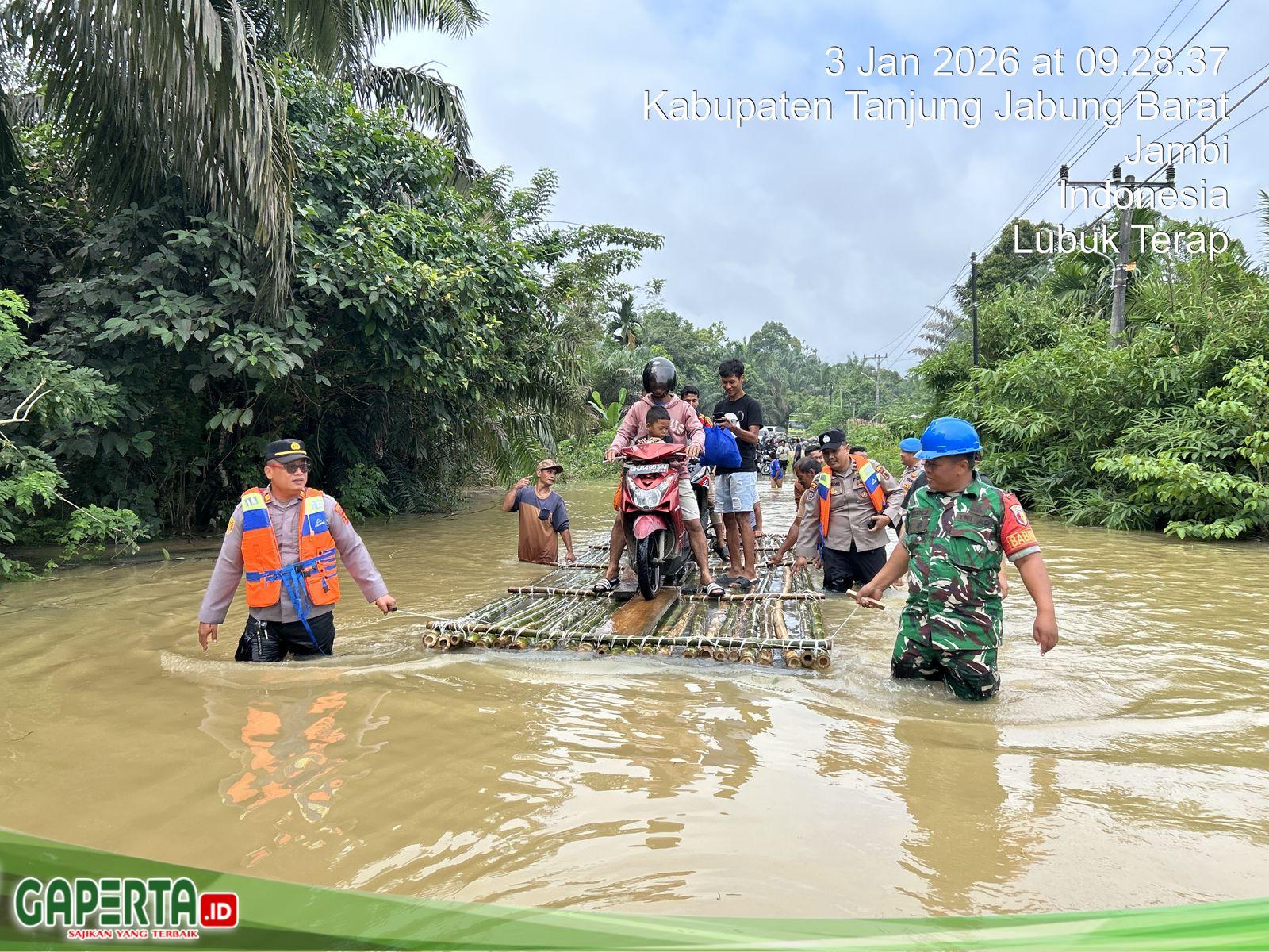 Jambi, [Gaperta.id] – Curah hujan tinggi yang mengguyur wilayah Kecamatan Merlung mengakibatkan kenaikan debit air di sejumlah titik rawan banjir. Menyikapi kondisi tersebut, Personel Polsek Merlung melaksanakan monitoring dan pengecekan debit air pada Sabtu (03/01/2026) sekira pukul 09.00 WIB hingga selesai.