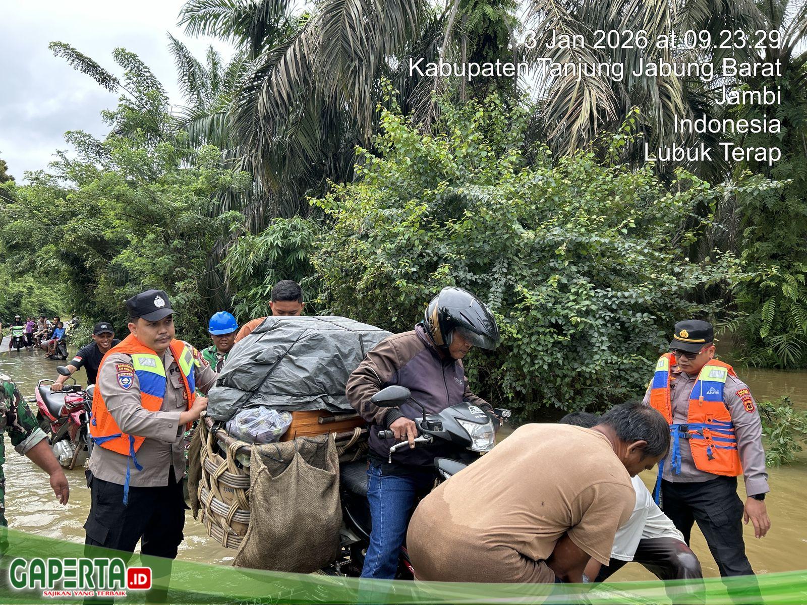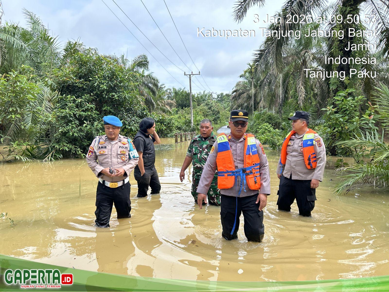 Kapolres Tanjung Jabung Barat AKBP AGUNG BASUKI, SIK., MM, melalui Kapolsek Merlung, AKP Agung Heru Wibowo, S.H., M.H., menyampaikan bahwa pengecekan dilakukan di beberapa lokasi strategis dan rawan genangan air, di antaranya Jalan Lintas Tengah Tebo–Merlung Desa Lubuk Terap, akses jalan menuju Merlung di Desa Tanjung Paku, serta Pasar Kalangan Desa Merlung, Kecamatan Merlung.