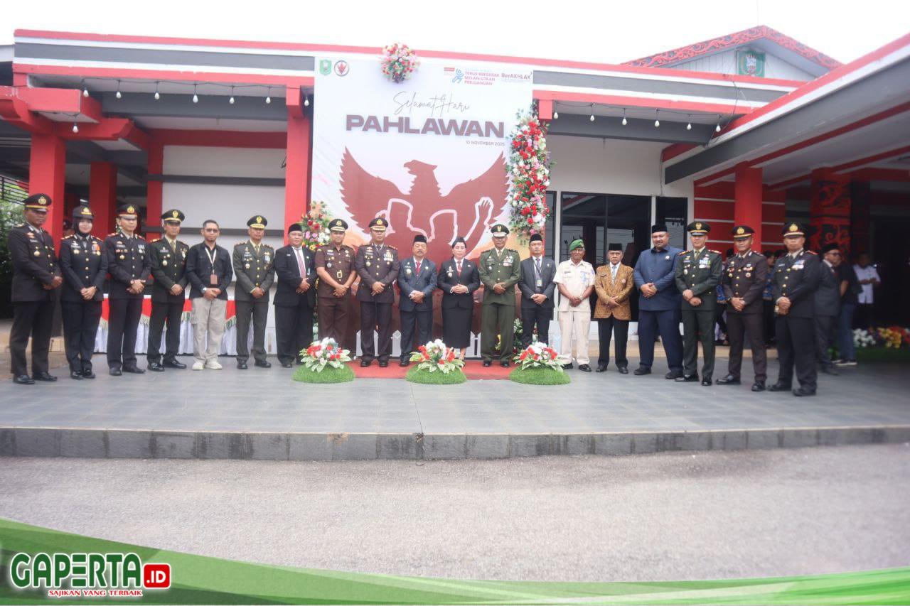 SANGGAU, [Gaperta.id] – Dalam rangka memperingati Hari Pahlawan ke-80 tahun 2025, Kodim 1204/Sanggau bersama Pemerintah Kabupaten Sanggau melaksanakan Upacara Pengibaran Bendera Merah Putih yang berlangsung khidmat di halaman Kantor Bupati Sanggau, Jalan Jenderal Sudirman, Kelurahan Ilir Kota, Kecamatan Kapuas, Kabupaten Sanggau, Senin (10/11/2025) pukul 08.00 WIB.