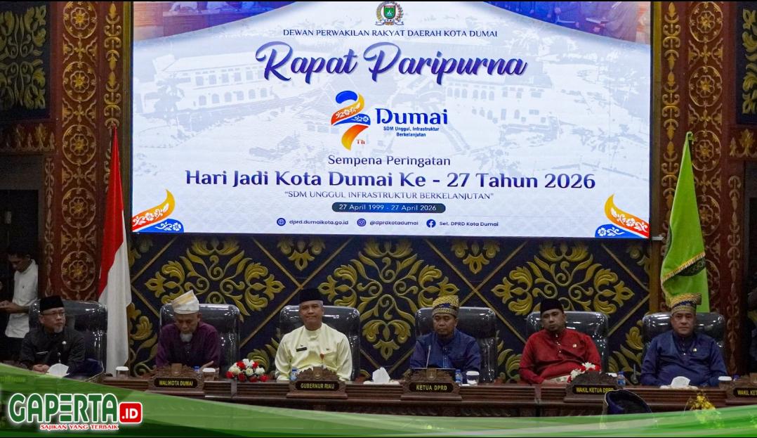Rapat Paripurna Sempena Hari Jadi ke-27 Kota Dumai berlangsung pada Senin, 27 April 2026, di Ruang Rapat Paripurna DPRD Kota Dumai. Acara ini menjadi wadah strategis bagi para pejabat daerah untuk mengevaluasi capaian pembangunan selama 26 tahun terakhir serta merumuskan visi ke depan.