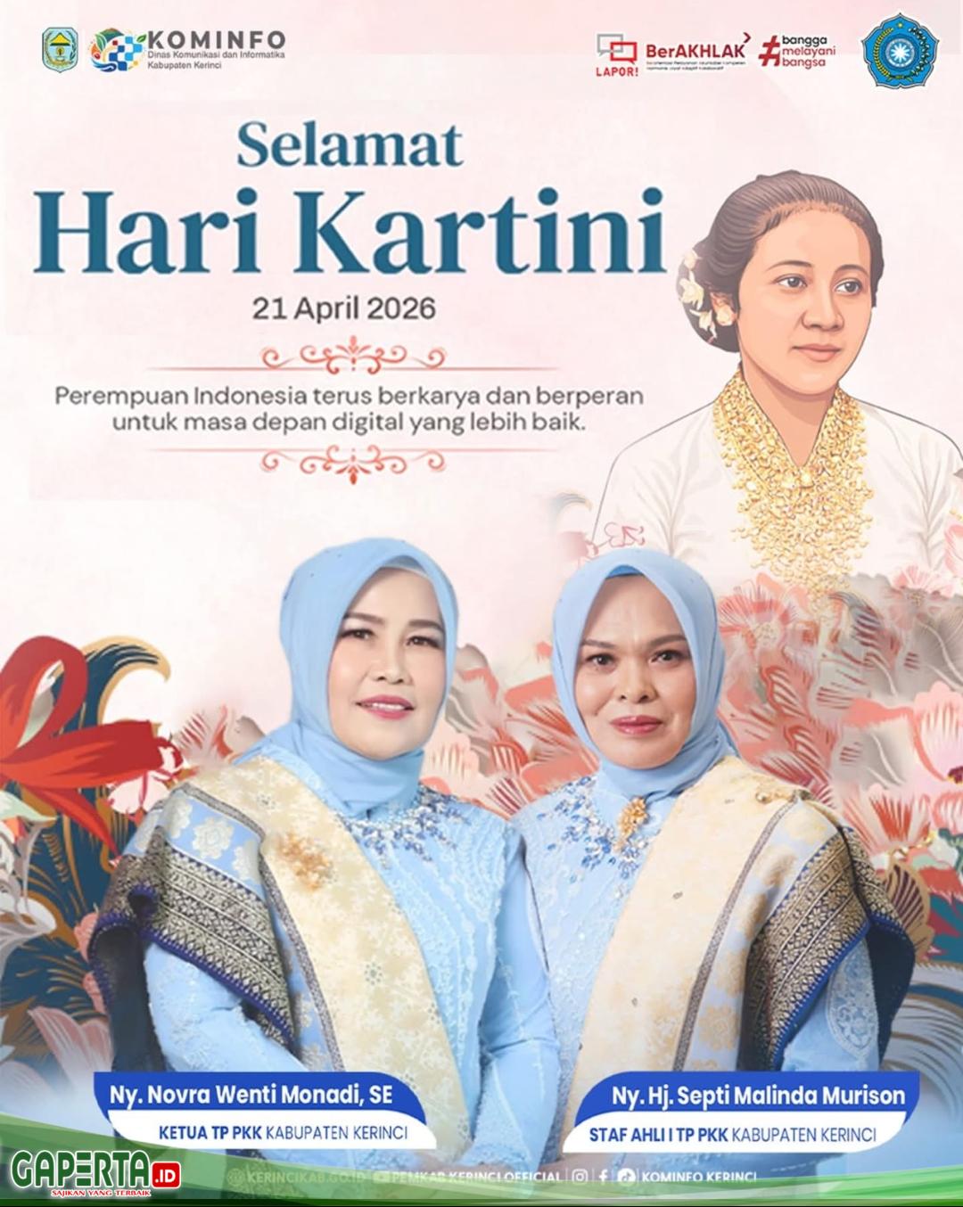 KERINCI, [Gaperta.id] – Ketua TP-PKK Kabupaten Kerinci, Novra Wenti Monadi, menyampaikan ucapan selamat memperingati Hari Kartini yang jatuh pada 21 April 2026.
