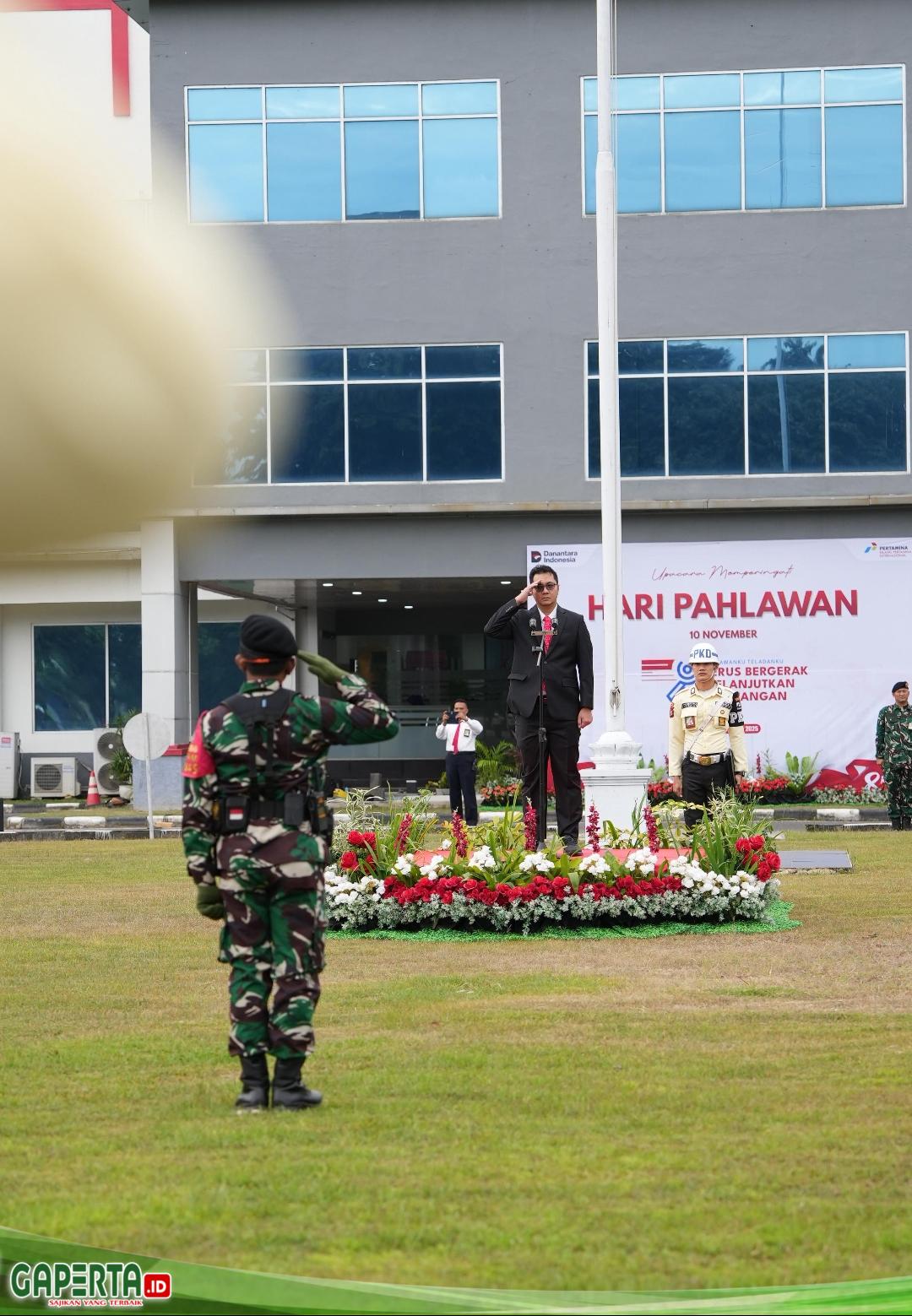 DUMAI, [Gaperta.id] — Suasana Khidmat dengan semangat nasionalisme yang tinggi dari para Perwira menyelimuti Lapangan Main Office PT Kilang Pertamina Internasional (PT KPI) Refinery Unit II Dumai (Kilang Pertamina Dumai) pada peringatan Hari Pahlawan 2025 yang dilaksanakan Senin pagi (10/11). Upacara yang berlangsung pada pukul 07.00 WIB ini diikuti oleh jajaran manajemen, Perwira dan Pertiwi Kilang, serta tim BKO TNI AD.