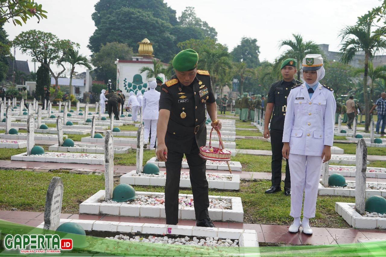 JAMBI, [Gaperta.id] – Korem 042/Gapu menggelar kegiatan Ziarah Rombongan dalam rangka memperingati Hari Juang TNI AD Ke-80 Tahun 2025 di Taman Makam Pahlawan (TMP) Satria Bhakti Kota Jambi, Rabu pagi (11/12/2025). Kegiatan ini dipimpin langsung Danrem 042/Gapu Brigjen TNI Heri Purwanto S.E., M.Sc, diikuti para pejabat Korem, prajurit, PNS dan Persit.