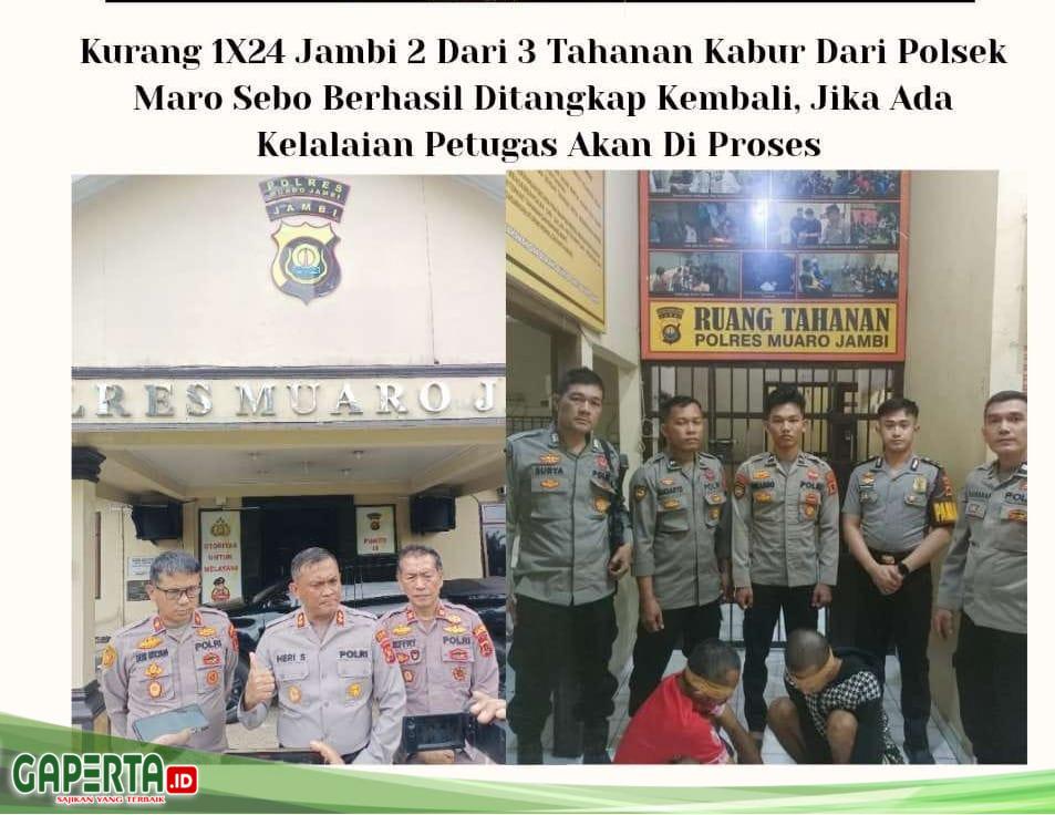 Kurang Dari 24 Jambi 2 Dari 3 Tahanan Kabur Dari Polsek Maro Sebo 1×24 Jam Berhasil Kembali Ditangkap Polres Muaro Jambi
