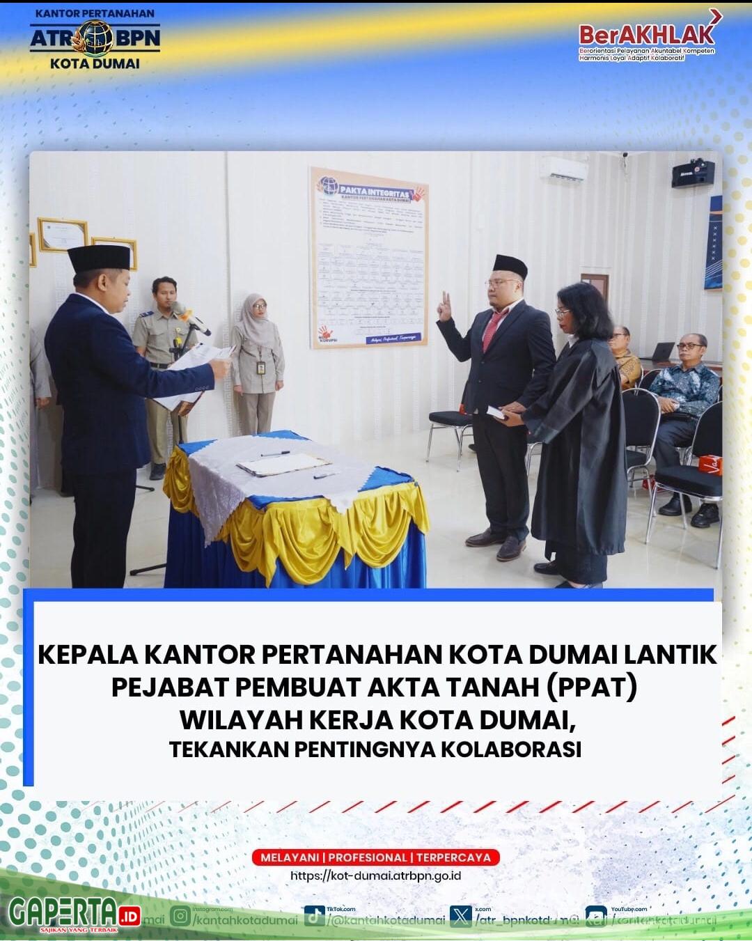 Pelantikan ini diharapkan menjadi momentum penguatan komitmen bersama antara Kantor Pertanahan dan PPAT dalam mewujudkan pelayanan pertanahan yang modern, responsif, dan terpercaya bagi masyarakat Kota Dumai.
