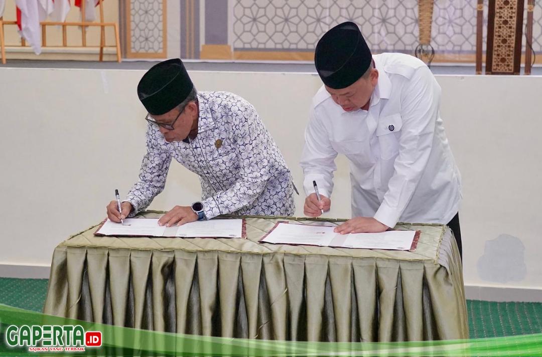 PALU, [Gaperta.id] – Menteri Agraria dan Tata Ruang/Kepala Badan Pertanahan Nasional (ATR/BPN), Nusron Wahid bersama Rektor Universitas Islam Negeri (UIN) Datokarama Palu, Lukman S. Thahir, menandatangani Nota Kesepahaman/MoU terkait pelaksanaan Kuliah Kerja Nyata (KKN) Tematik di bidang pertanahan pada Rabu (01/04/2026). Kerja sama ini menjadi langkah konkret mendorong keterlibatan mahasiswa untuk membantu menyelesaikan legalisasi tanah wakaf.
