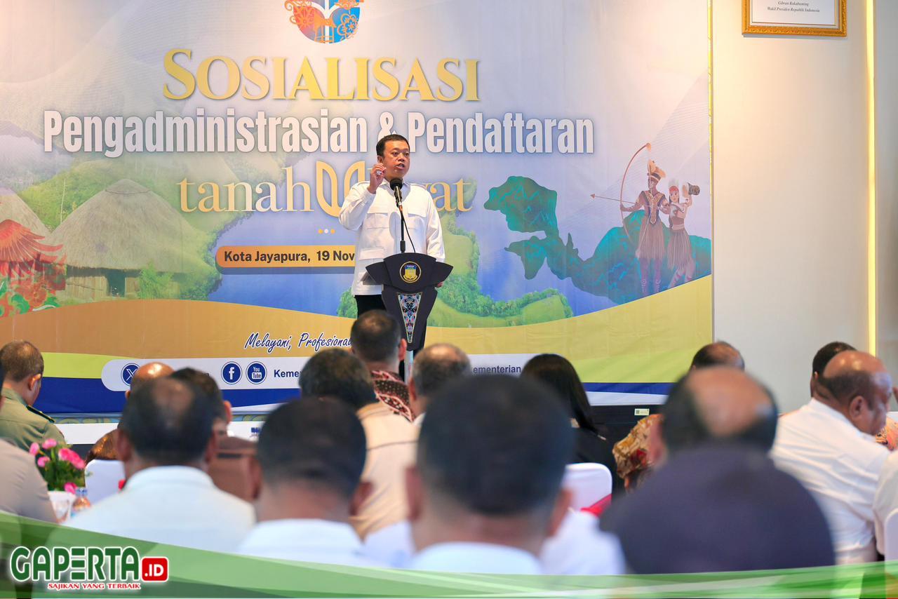 JAYAPURA, [Gaperta.id] — Menteri Agraria dan Tata Ruang/Kepala Badan Pertanahan Nasional (ATR/BPN), Nusron Wahid, menegaskan komitmen pemerintah untuk mempercepat pendaftaran dan sertipikasi tanah ulayat di Papua. Hal ini dibutuhkan agar masyarakat hukum adat ikut memperoleh kesejahteraan secara maksimal.