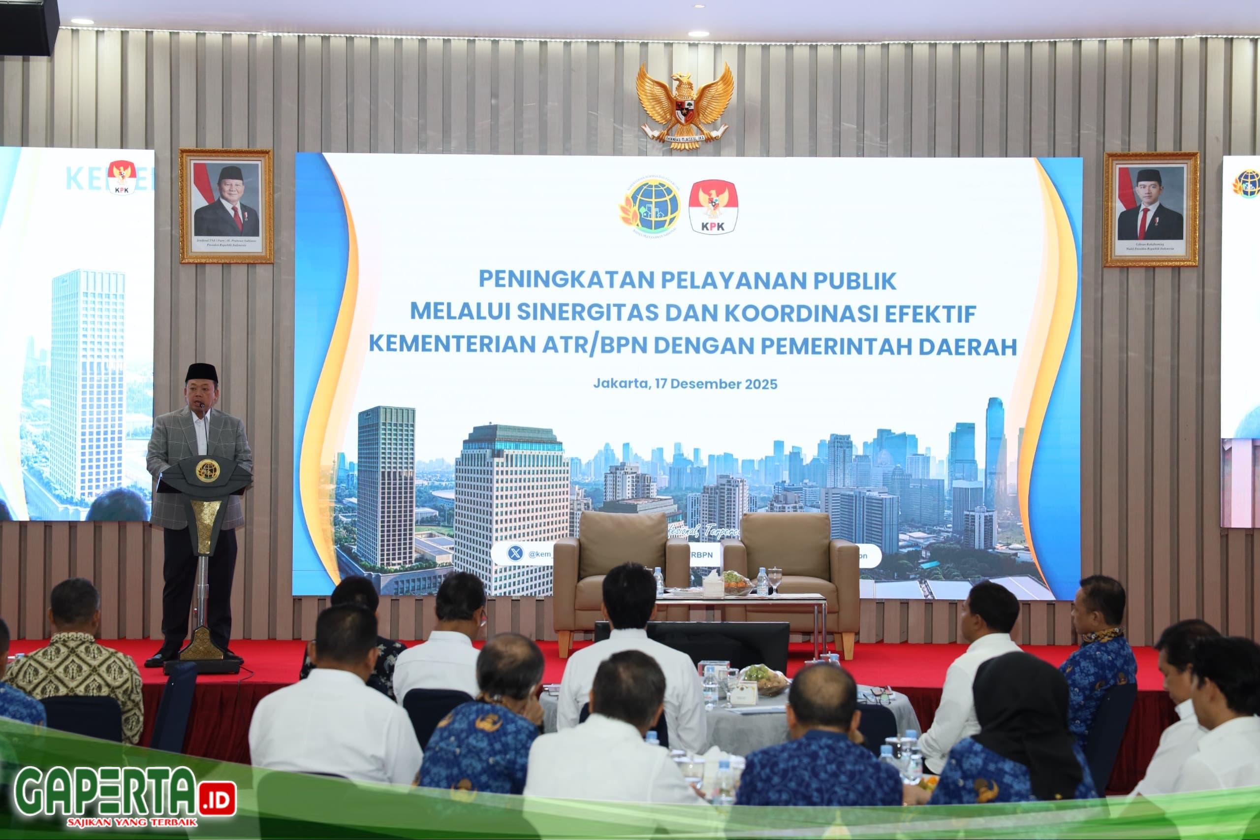 JAKARTA, [Gaperta.id] — Kementerian Agraria dan Tata Ruang/Badan Pertanahan Nasional (ATR/BPN) memperkuat upaya pencegahan korupsi di bidang pertanahan melalui Sosialisasi bersama Komisi Pemberantasan Korupsi (KPK). Saat membuka sosialisasi pada Rabu (17/12/2025), Menteri ATR/Kepala BPN, Nusron Wahid, menyoroti pentingnya peranan KPK untuk mendeteksi celah di sistem pelayanan pertanahan yang sedang dalam proses transformasi.