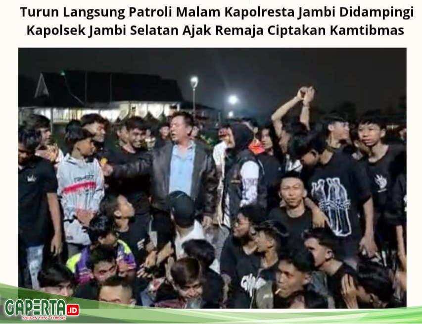 Kota Jambi, [Gaperta.id] – Kepala Kepolisian Resort Kota (Kapolresta ) Jambi Kombes Pol Boy Sutan Binanga Siregar SIK MH turun langsung melakukan patroli mobile Kamtibmas di tempat biasa menjadi tongkrongan remaja pada malam weekend di Kota Jambi (8/02)