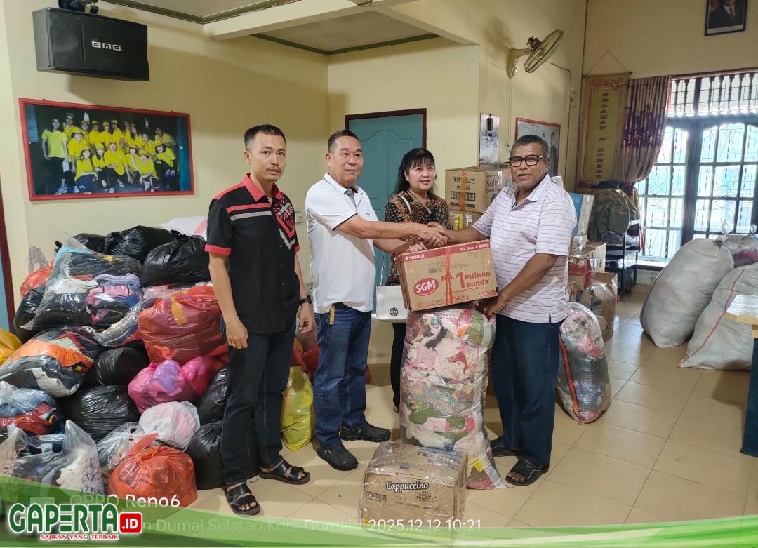 DUMAI, [Gaperta.id] — Hati Ketua Himpunan Ikatan Keluarga Masyarakat Aceh (Hikmah) Kota Dumai Badaruzzaman Yoesha berbunga-bunga tatkala menerima bantuan pakaian bebas layak pakai dan makanan kering dari Ketua Umum Ikatan Persaudaraan Keluarga Tionghoa Bengkalis – Dumai (IPKTB – Dumai) Kompol (Purn) Dedi Susanto, S.H., Jumat (12/12/2025).