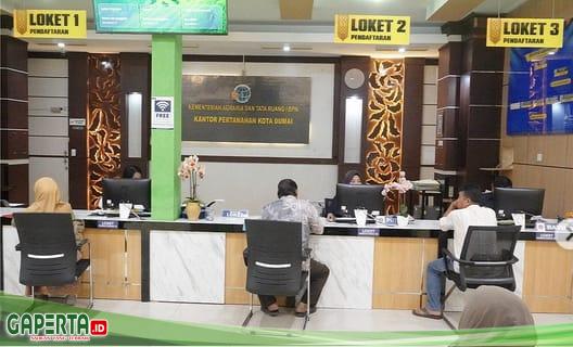 DUMAI, [Gaperta.id] — Kantor Pertanahan (Kantah) Kota Dumai melaksanakan Layanan SatSet (Satu Hari Peningkatan Hak, Selesai di Tempat) di loket pelayanan Kantor Pertanahan Kota Dumai. Layanan ini adalah merupakan inovasi dari kantor pertanahan kota dumai dimana bertujuan utk meningkatkan kepuasan masyarakat dengan layanan yang lebih cepat namun tetap mengutamakan proses administrasi yang tepat.