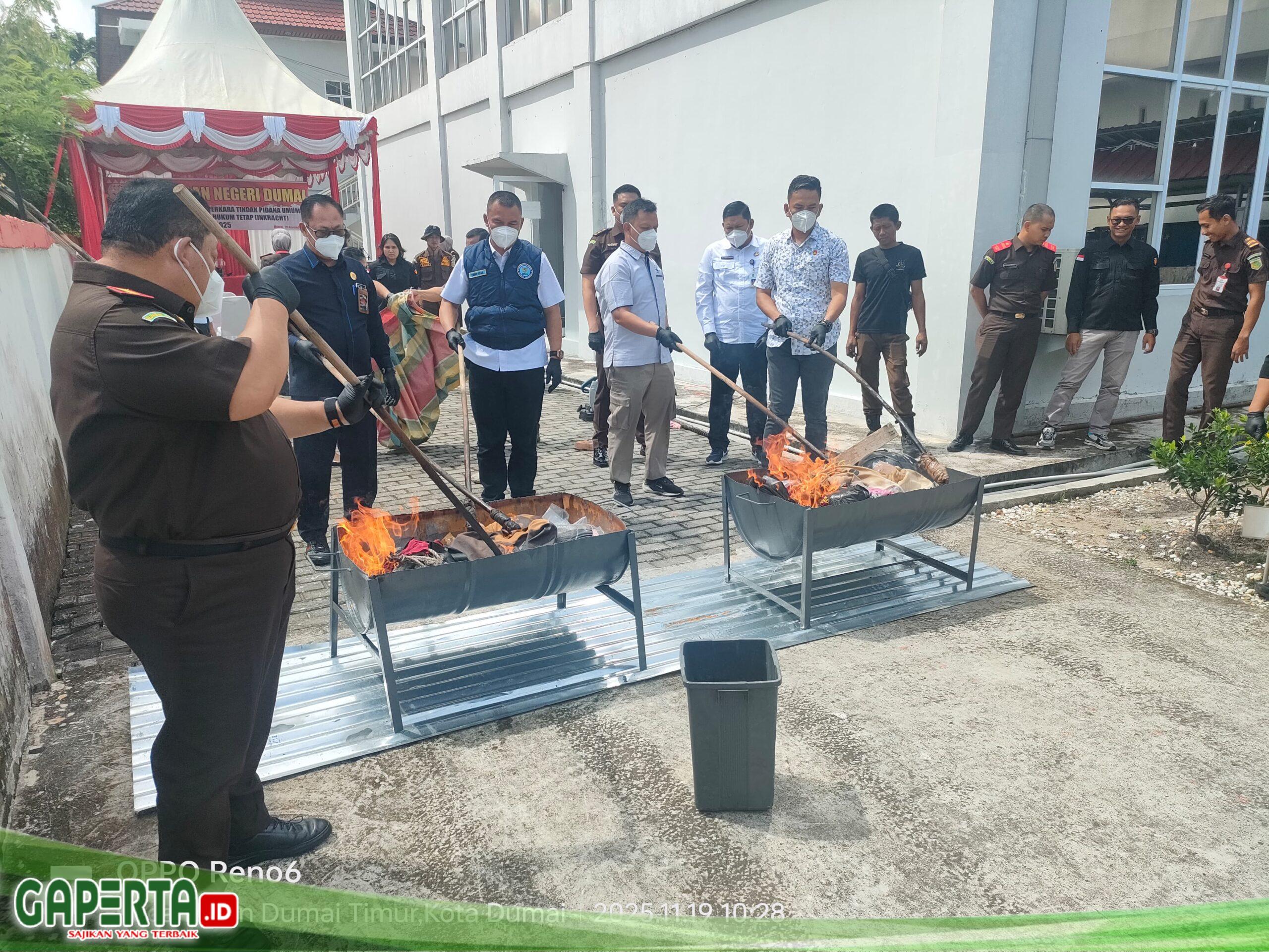 DUMAI, [Gaperta.id] — Senin (19/11/2025), Kejari Dumai lakukan Pemusnahan Barang Bukti perkara-perkara yang ditangani bidang tindak Pidana Umum selama periode September sampai dengan bulan Oktober tahun 2025 yang telah berkekuatan hukum tetap (inkracht).