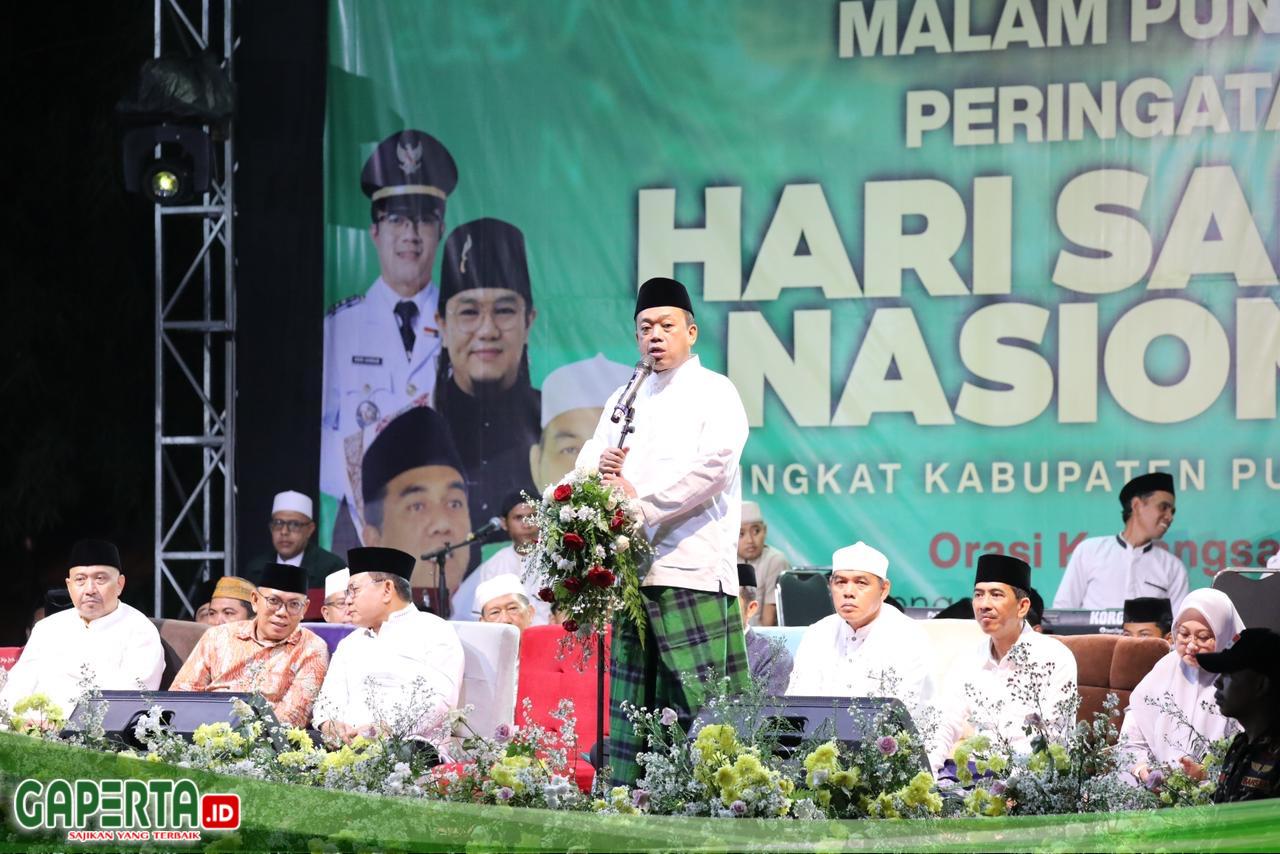 PURWAKARTA, [Gaperta.id] – Menteri Agraria dan Tata Ruang/Kepala Badan Pertanahan Nasional (ATR/BPN), Nusron Wahid menyatakan bahwa santri dan kiai punya peran penting dalam merebut serta mempertahankan kemerdekaan Republik Indonesia. Hal itu disampaikan dalam orasi kebangsaannya pada peringatan Hari Santri Nasional di Kabupaten Purwakarta, Sabtu (25/10/2025) malam, yang dihadiri para kiai, santri, dan tokoh masyarakat.