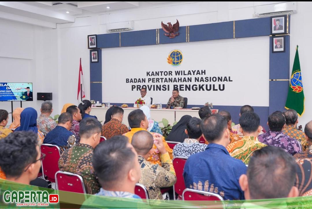BENGKULU, [Gaperta.id] — Dalam menjalankan tugas, jajaran Kementerian Agraria dan Tata Ruang/Badan Pertanahan Nasional (ATR/BPN) harus memastikan alur pekerjaan yang dilakukan sesuai dengan peraturan perundang-undangan berlaku. Pesan ini Wakil Menteri (Wamen) ATR/Wakil Kepala (Waka) BPN, Ossy Dermawan, sampaikan saat memberikan pembinaan kepada jajaran Kantor Wilayah (Kanwil) BPN Provinsi Bengkulu, Selasa (16/09/2025).