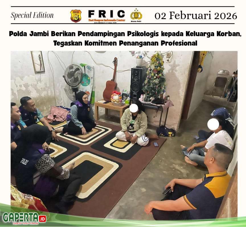 Pendampingan tersebut dilakukan oleh tim psikolog Polda Jambi guna membantu proses pemulihan psikologis secara bertahap, sekaligus memastikan keluarga korban mendapatkan dukungan yang dibutuhkan dalam menghadapi situasi sulit ini.