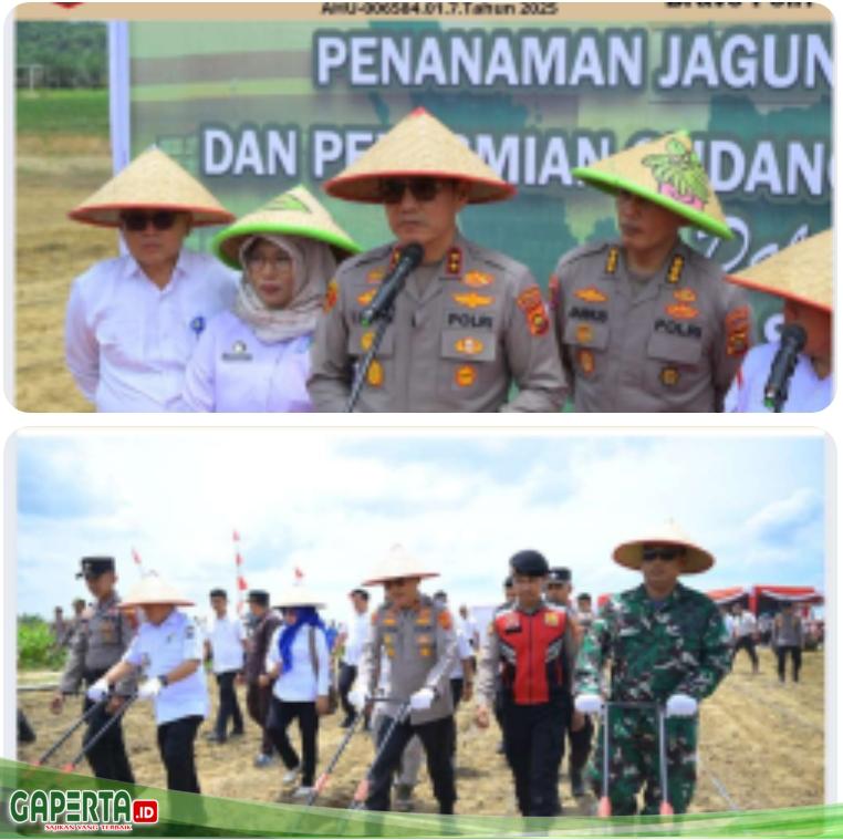 Jambi, [Gaperta.id] – Dalam rangka mendukung program Swasembada Pangan Nasional Tahun 2025, Kepolisian Daerah Jambi melaksanakan kegiatan Penanaman Jagung Serentak Kuartal IV dan Peresmian Gudang Ketahanan Pangan Polri, bertempat di lahan penanaman PT. Brahma Bina Bakti KM. 53, Desa Suko Awin Jaya, Kecamatan Sekernan, Kabupaten Muaro Jambi, Rabu (8/10/2025).