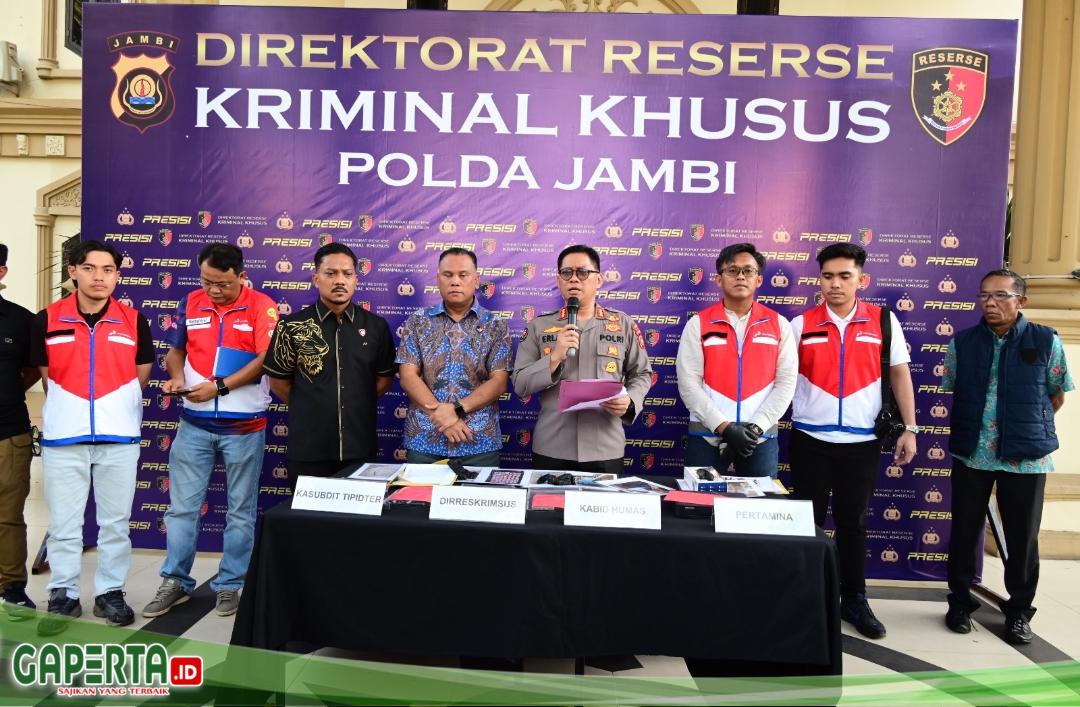 Jambi, [Gaperta.id] – Polda Jambi menggelar konferensi pers terkait pengungkapan dugaan tindak pidana di bidang minyak dan gas (migas) yang terjadi di wilayah Kabupaten Bungo, pada Jumat (10/4/2026)