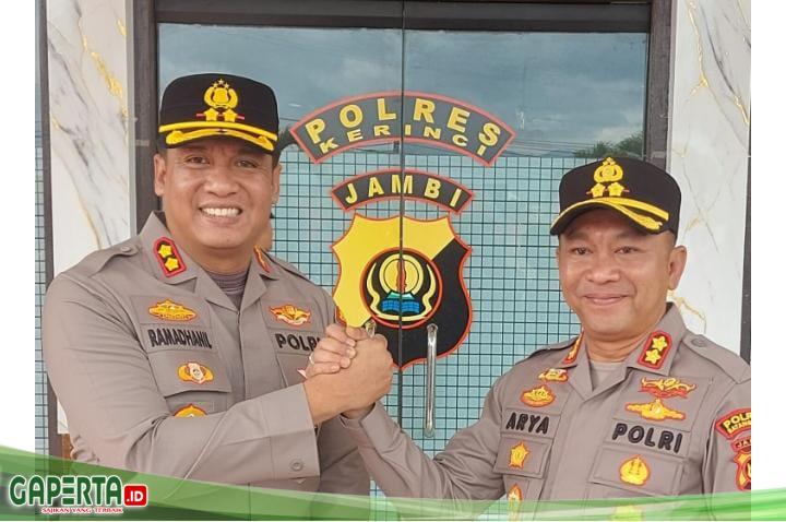 Kerinci, [Gaperta.id] – Tindak lanjut Serah terima Jabatan (Sertijab) Kapolres Kerinci dari AKBP Arya Tesa Brahmana S.I.K dengan AKBP Ramadhanil SH.S.I.K.MH oleh Kapolda Jambi Irjen Pol Krisno H Siregar belum lama berselang, dilanjutkan tradisi pedang pora.