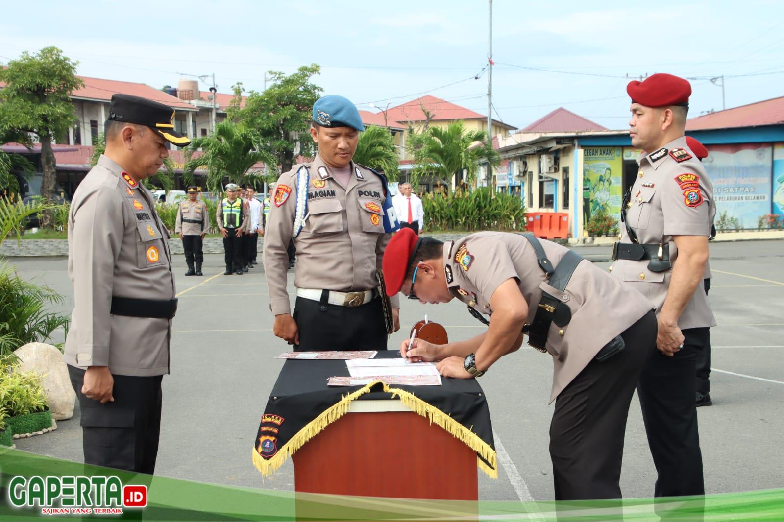 BELAWAN, [Gaperta.id] – Bertempat di lapangan apel Polres Pelabuhan Belawan, telah dilaksanakan kegiatan Upacara Serah Terima Jabatan (Sertijab) Kasat Reskrim, Kasat Narkoba dan Kasat Lantas Polres Pelabuhan Belawan, Senin pagi sekira pukul 08.00 WIB.