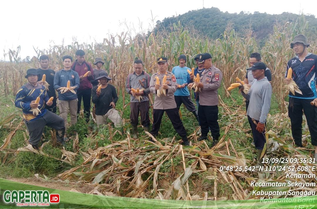 Sanggau, [Gaperta.id] – Jajaran Polsek Sekayam bersama warga melaksanakan kegiatan panen jagung di Desa Kenaman, Kecamatan Sekayam, Kabupaten Sanggau, Kalimantan Barat, Jumat (13/9/2025). Kegiatan panen ini merupakan bagian dari upaya ketahanan pangan sekaligus mempererat hubungan antara polisi dan masyarakat.