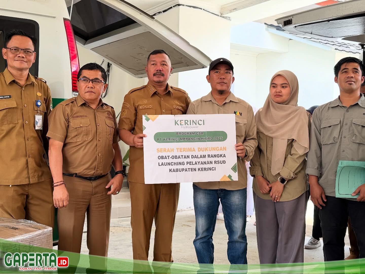 Kerinci, [Gaperta.id] – RSUD Kabupaten Kerinci menerima bantuan obat dan bahan medis dari PT Kerinci Merangin Hidro (KMH) sebagai wujud kepedulian perusahaan terhadap peningkatan layanan kesehatan masyarakat Kerinci, Senin (3/10/2025).