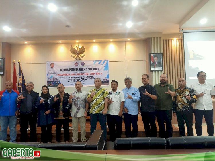 kinerja KSOP Belawan dalam pencarian korban tenggelamnya kapal KM Lima Dai 8 dan mengapresiasi atas kegiatan penyerahan santunan kepada ahli waris yang sebesar besarnya kepada korban tenggelamnya kapal KM Lima Dai 8 dan Rudi Hartono juga mengucapkan turut berdukacita atas korban, semoga korban ditempatkan di tempat yang sebaik baiknya dan ditempatkan di Jannah nya Allah SWT, Kami juga mengucapkan terima kasih kepada pimpinan PT Melda Jaya yang telah menyelesaikan hak dan kewajiban terhadap ahli waris korban.