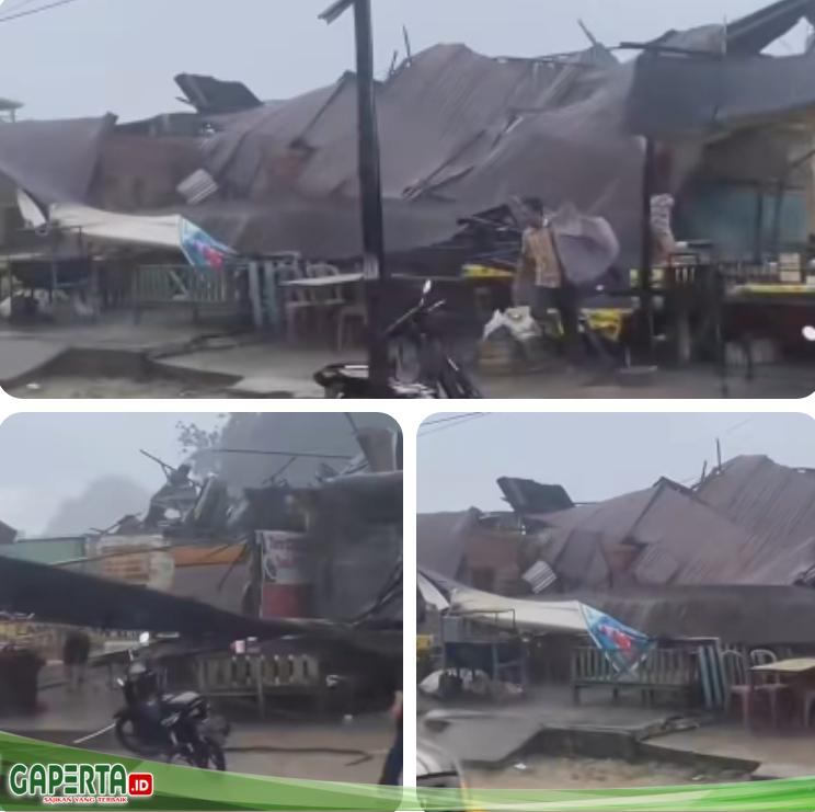 Berdasarkan informasi warga di lokasi, cuaca buruk berlangsung sekitar pukul 10.45 WIB, ditandai dengan angin kencang yang menggulung dari arah perbukitan. Tidak butuh waktu lama, sejumlah bangunan ringan dan lapak dagangan di sekitar lokasi tampak porak-poranda. Atap seng beterbangan, sementara tiang penyangga bangunan runtuh akibat kuatnya terpaan angin.