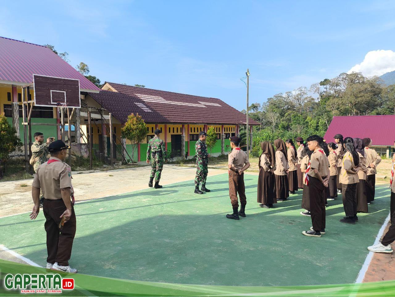 Sambas, [Gaperta.id] – Guna mempersiapkan generasi muda di wilayah perbatasan menjadi generasi tangguh, Satgas Pamtas RI-Malaysia Yonkav 12/BC, Pos Gabma Sajingan melaksanakan pembinaan Pramuka Penegak Bantara SMAN 1 Sajingan Besar, Kabupaten Sambas. Dansatgas Pamtas RI-Malaysia Yonkav 12/BC, Letkol Kav Andy Setio Untoro, S.H., M.Han., menyampaikan selain mengajarkan baris berbaris kepada Penegak Bantara SMAN 1 Sajingan Besar, prajurit di Pos Sajingan Besar juga mengajarkan pentingnya menjaga persatuan dan kesatuan.