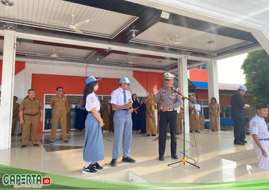Giat menjadi inspektur upacara di sekolah SMA 4 Kota Jambi Wakasat Lantas Polresta Jambi